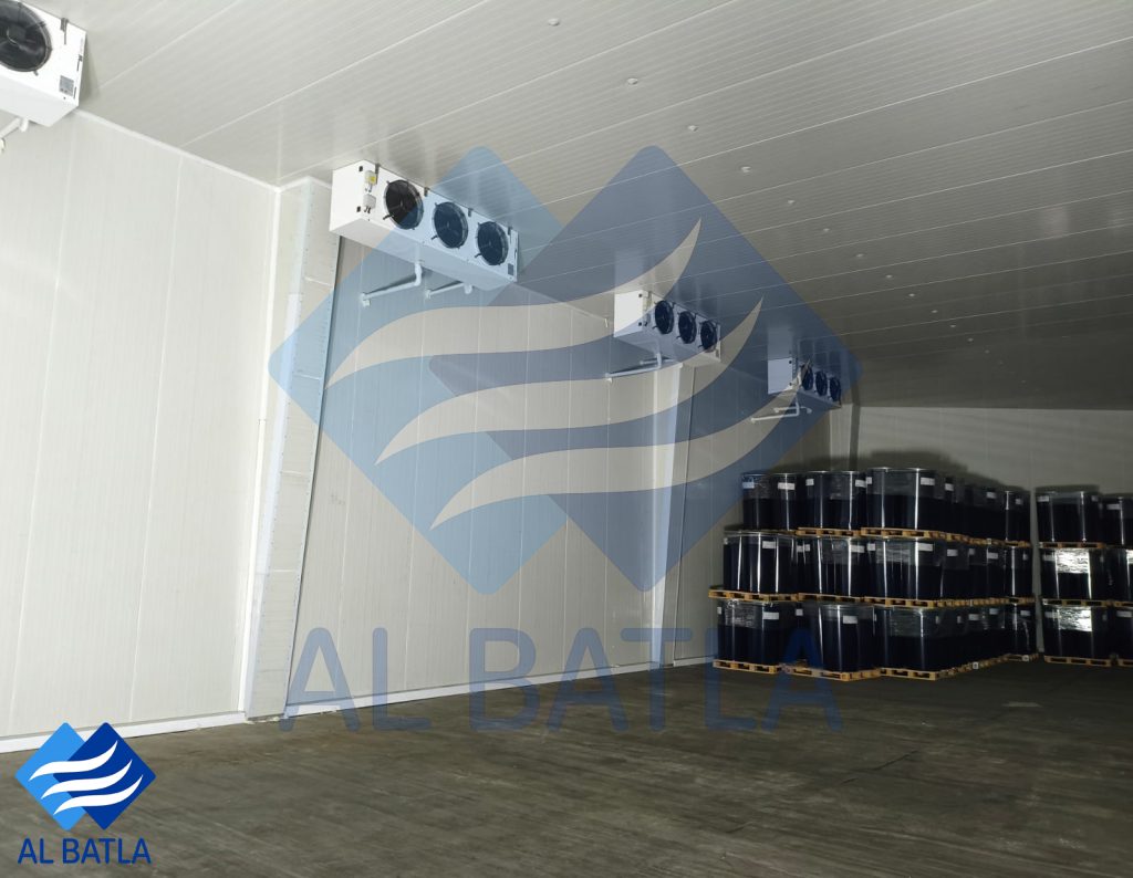 تجهيز وتركيب وتشغيل معدات المخزن المبرد لمخزن حفظ المطيبات – في الزعفرانية وبمساحة أجمالية 1560 م3 وبقدرة تبريد 124 كيلو واط وبدرجة (+ 4 م ْ )وتم استخدام الضواغط نوع كوبلند أمريكي والمعدات من شركة ثرمووي التركية ومن النوع الصناعي